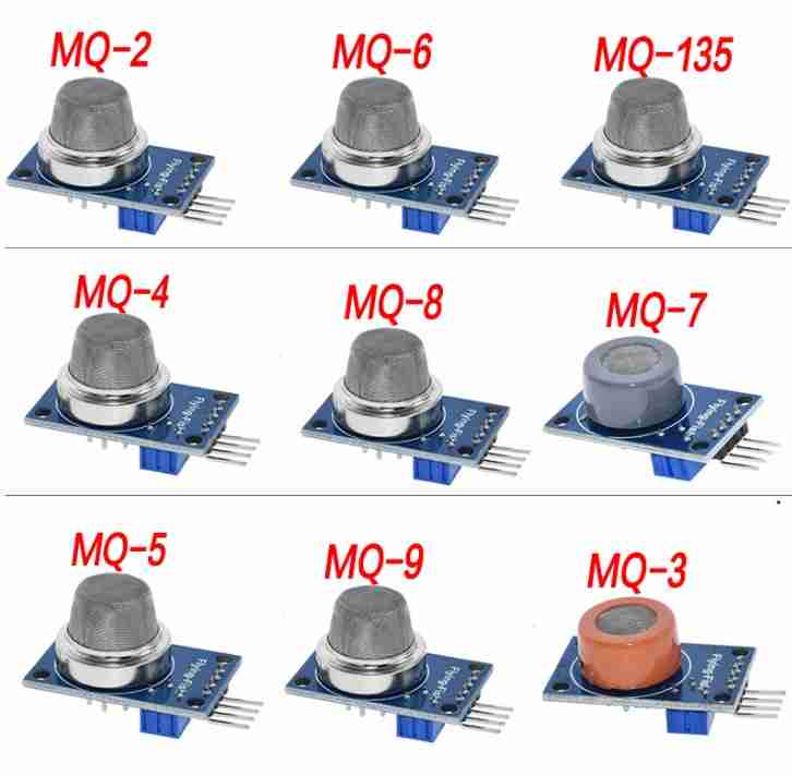 Ensemble de capteurs de gaz MQ (MQ-2 à MQ-135), compatible Arduino et ESP32. Idéal pour détection de gaz, fumée, CO, alcool, pollution. Pour projets domotiques et éducatifs.