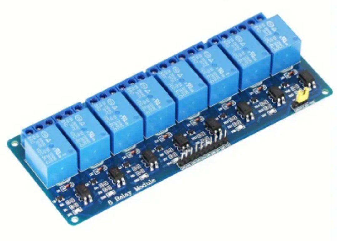 Un relais agit comme un interrupteur commandé électroniquement. Il permet d’isoler électriquement le circuit de commande (faible tension) du circuit de puissance (haute tension). Le module relais 5V 8 canaux vous donne la possibilité de contrôler huit appareils indépendamment en utilisant uniquement des signaux logiques de 5V.
